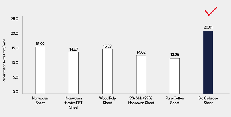 피부 흡착력과 유효성분 전달력이 일반 마스크에 비해 약 1.3배 이상 높아